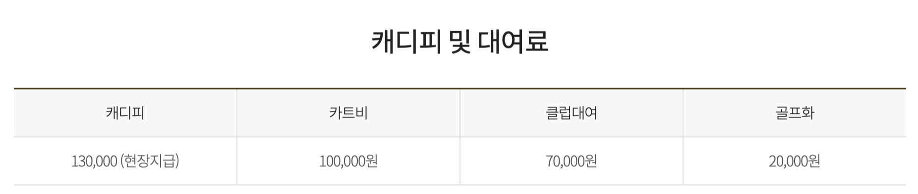 ※ 캐디피와 대여료는 18홀 기준 금액입니다.