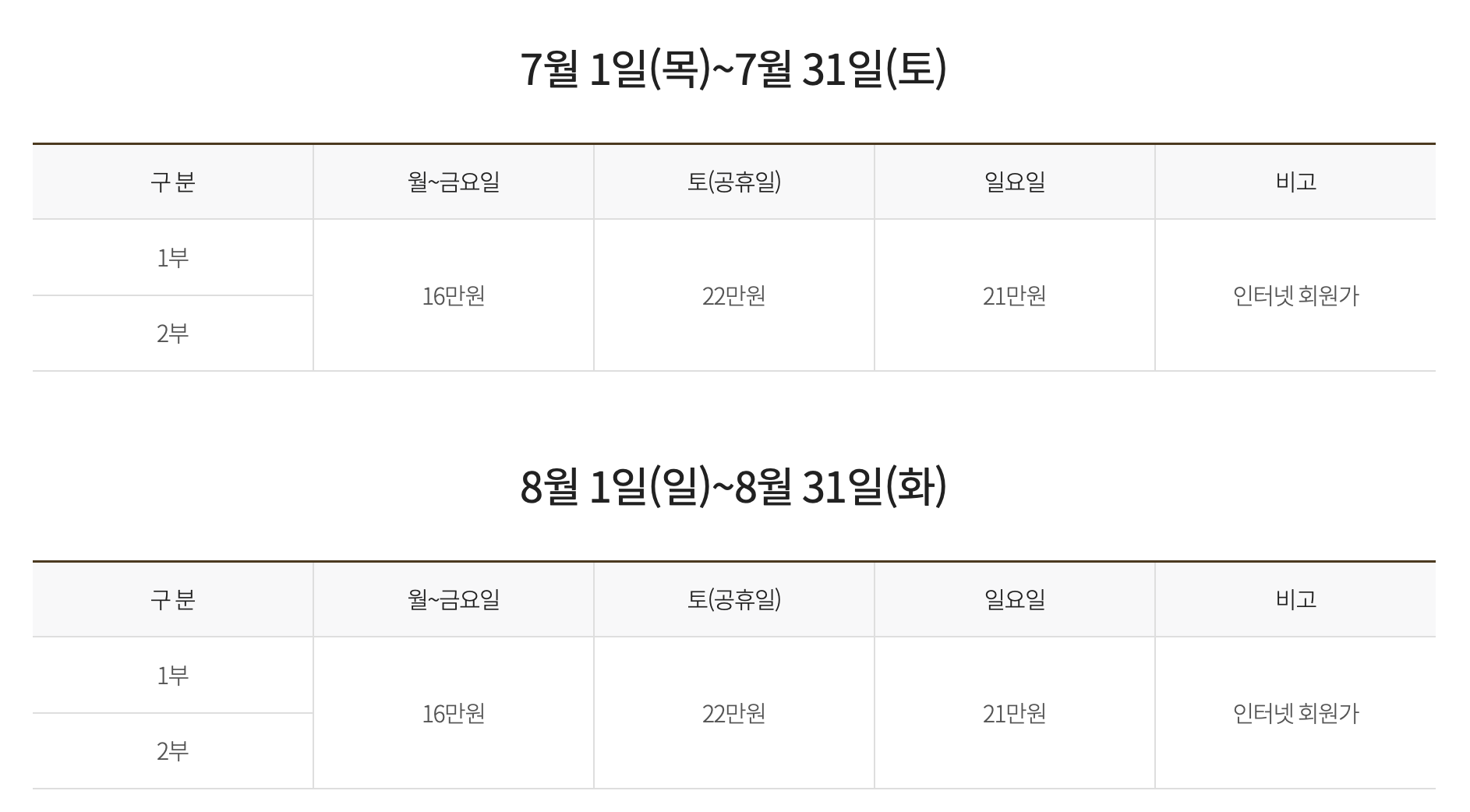 ※ 3인 내장 시 1만 원 추가 적용됩니다.