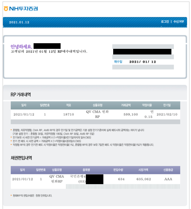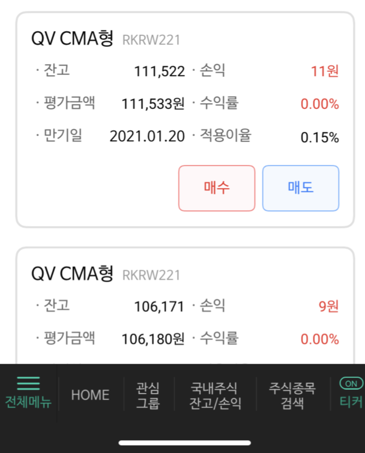 저는 QV CMA RP형 계좌를 개설한 것 같네요.