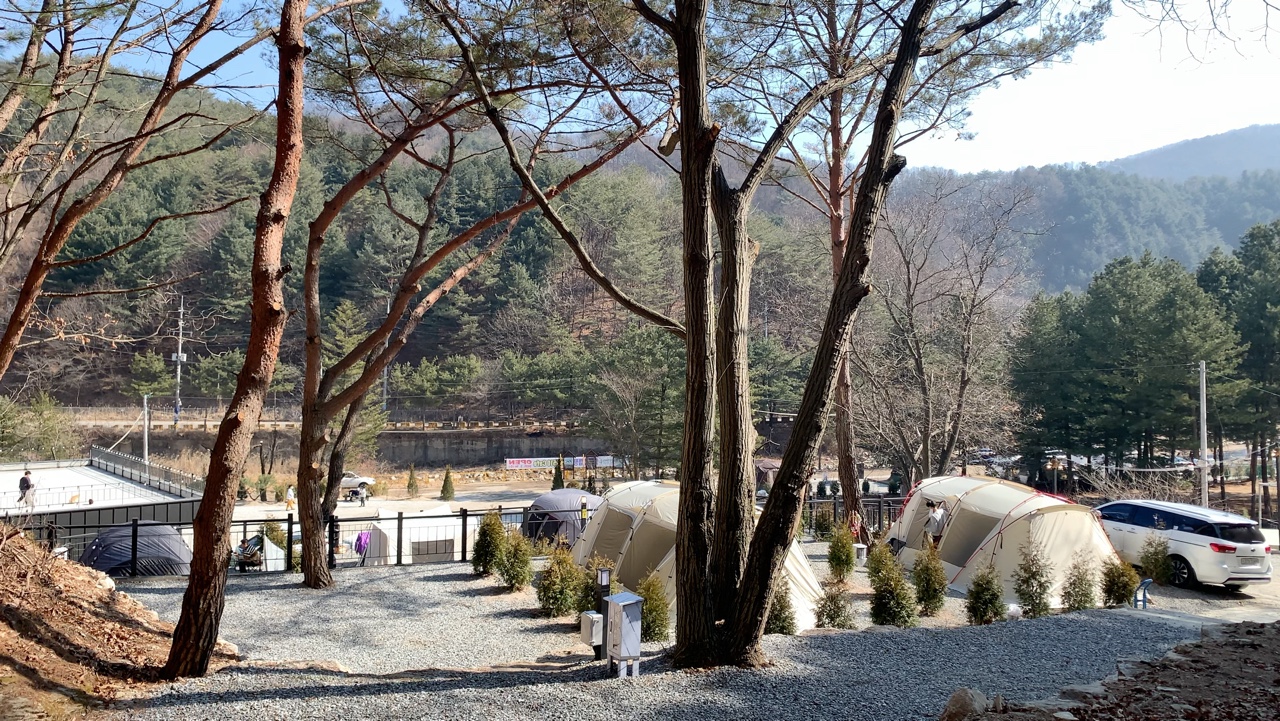 특히 소나무 9번 사이트는 크기(350 x 850)가 다른 사이트에 비해 작지만 양옆에 아무도 없고 앞에는 훌륭한 경치와 그 뒤에는 숲속정원이 있다는 것이 매우 매력적입니다. 단 소나무존은 텐트 근처에 주차를 할 수 없어 주차장에서 짐을 옮겨야 한다는 불편함 있습니다.